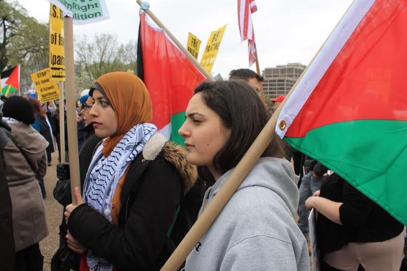WASHINGTON — Among the crowd of protesters gathered outside an American Israel Public Affairs Committee conference in Washington on March 20th stood a number of Palestinian families.